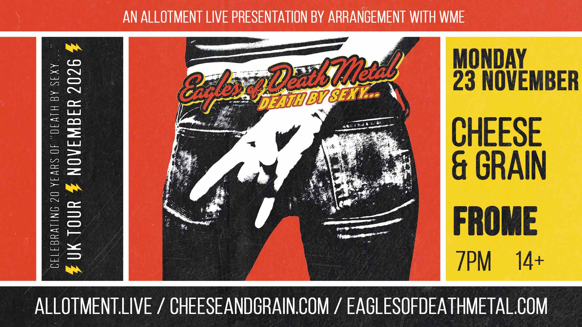 Globe-storming American rock heavyweights Eagles of Death Metal are bringing the swagger to Frome this November, celebrating 20 years of their iconic album Death By Sexy with a special anniversary show.
