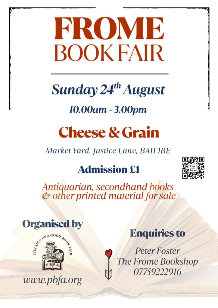 Welcome to our new book fair in Frome, Somerset, being held on Sunday 24th August. PBFA bookdealers will be offering books, maps, and ephemera for sale.