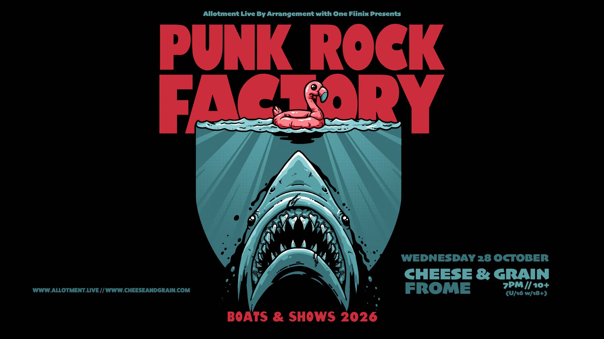In 2025 Kob left the band to pursue other endeavours. The remaining members continue to release music, tour the world, and bring people together through nostalgia, a love for music and popular culture. The band to kick-start 2026 played their biggest to date UK tour selling out some of the UK’s biggest venues. Preparing for their largest ever headline show on Halloween in London, Punk Rock Factory make their long overdue Cheese and Grain debut!