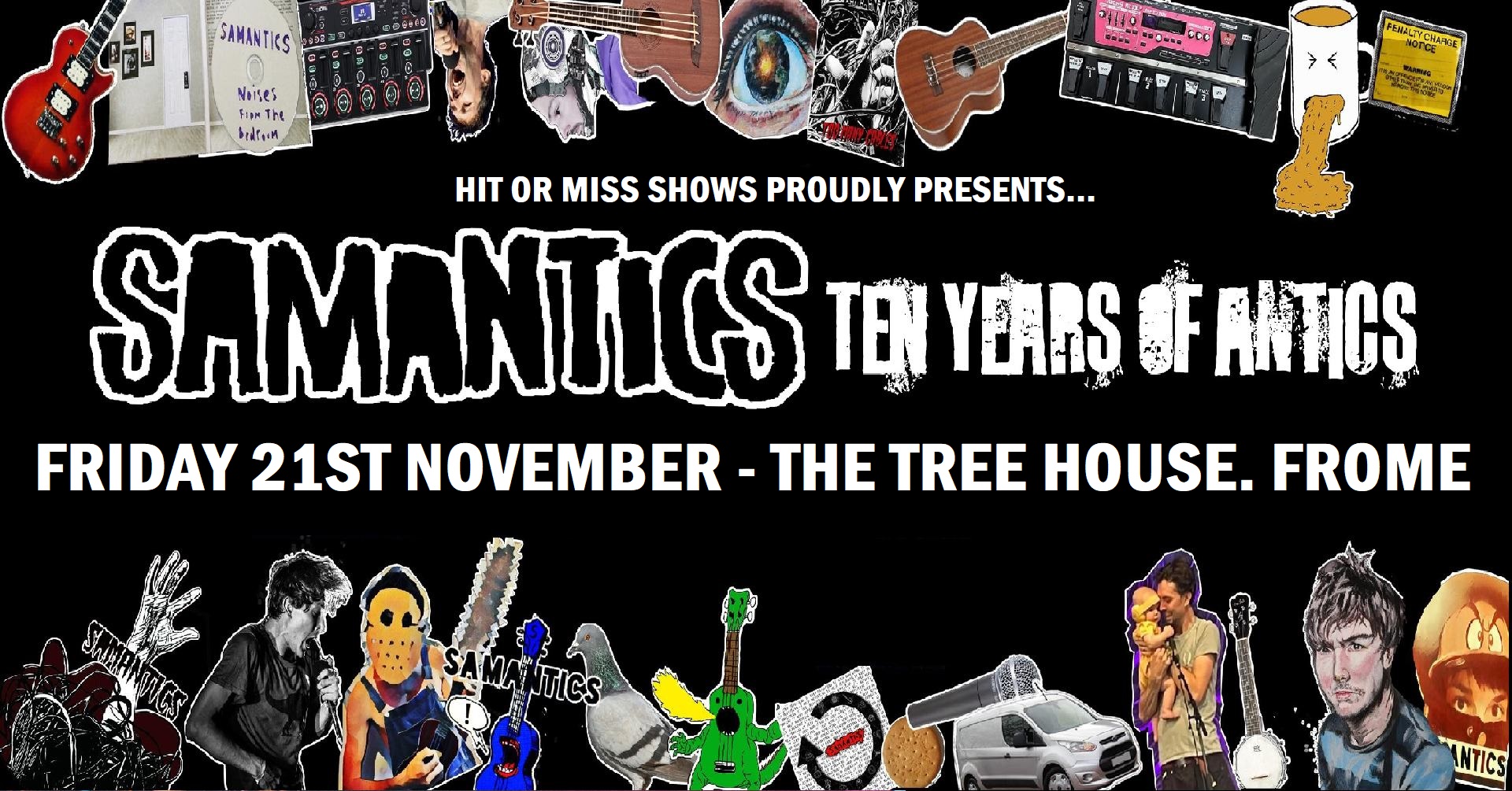 A Decade of Antics’ marks the 10 year anniversary of Samantics: a celebration of the moment when he found the thing to do with his in his life which at last made sense. To earn his slice of the infamous pie he’d tried teaching, graphic designing and being defecated on through a telephone but nothing had helped him understand the struggle of existing, until he created Samantics.